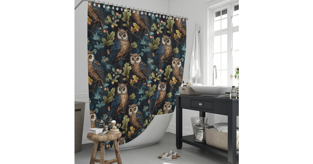 Treetop Owls Forestcore Bath Shower Curtain with C-shaped Hooks 72" x 72", witchy nature d