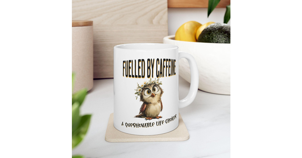 Fuelled by Caffeine Owl Mug, Funny Coffee Cup, Cute Owl Gift, Coffee Lover Present, Morning Humour 1