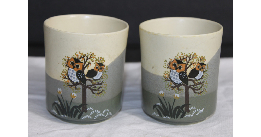 Hand Painted Owl Mugs: Japanese Coffee Cups, Set of 2