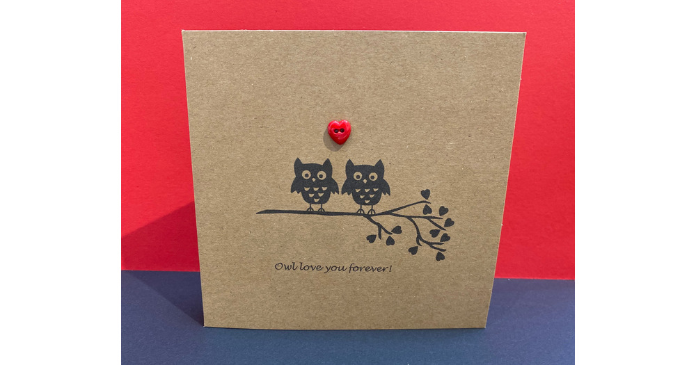 Owl Valentine Card- Valentine's Day Card - Cute owls- For her - For him- Anniversary - Button, G