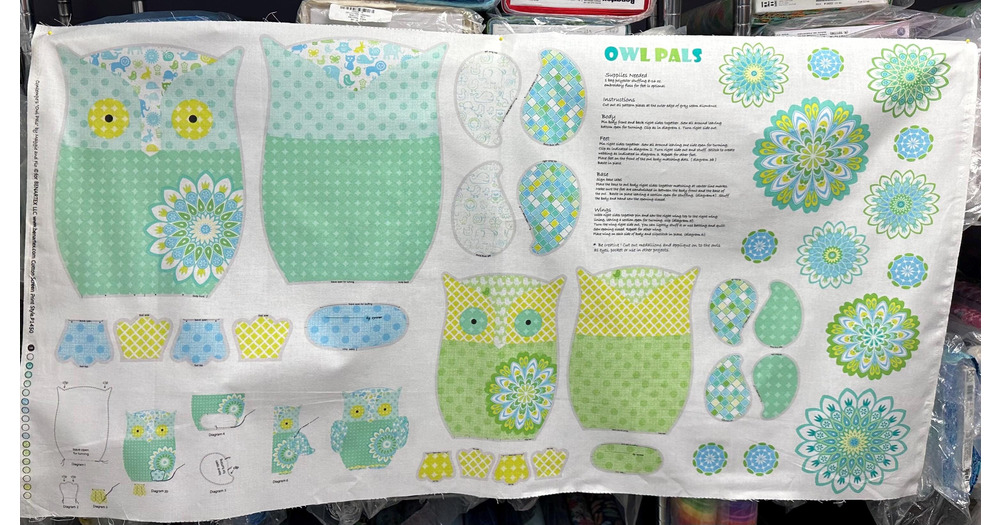 Owl Fabric Panel: Quilter Cotton, Mint Green, Teal - Contempo Owls and Pals