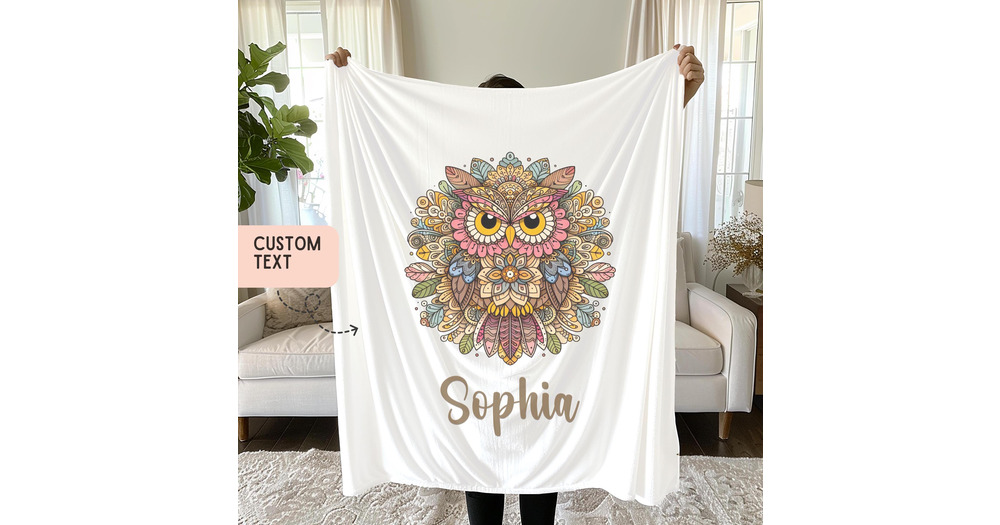 Mandala Owl Girl Name Blanket Personalized Owl Name Throw girl birthday gift cute owl gift for owl l