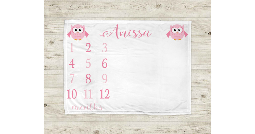 Owl milestone blanket, baby growth blanket, personalized baby gift, girl baby photo blanket, monthly