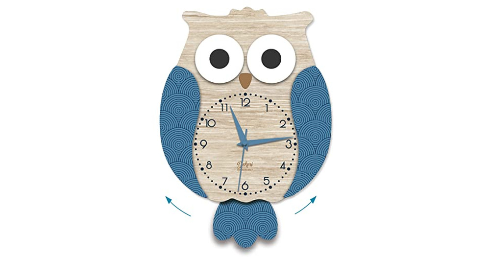 DEKORI Owl Wall Clock with Silent Pendulum – Wooden Decorative Wall Clock, No-Tick Quartz Move