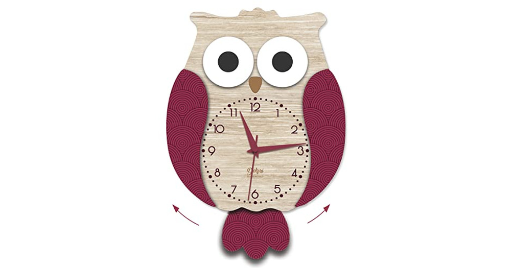DEKORI Owl Wall Clock with Silent Pendulum – Wooden Decorative Clock, Quiet No-Tick Quartz Mov