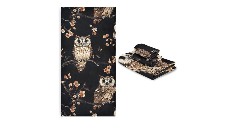 ALAZA Owl Leaf Bohemia Bath Towels Set 3 Piece 1 Bathroom Towels 1 Hand Towel 1 Washcloth Soft Luxur
