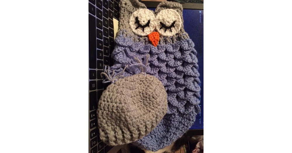 Owl Cocoon and matching beanie - Baby Photo Prop - Handmade Crocheted Swaddle Cocoon and hat - Newbo