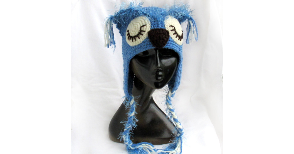 Crochet owl hat,Crochet sleepy owl hat.Crochet animal hat,Crochet blue hat,Crochet kid hat