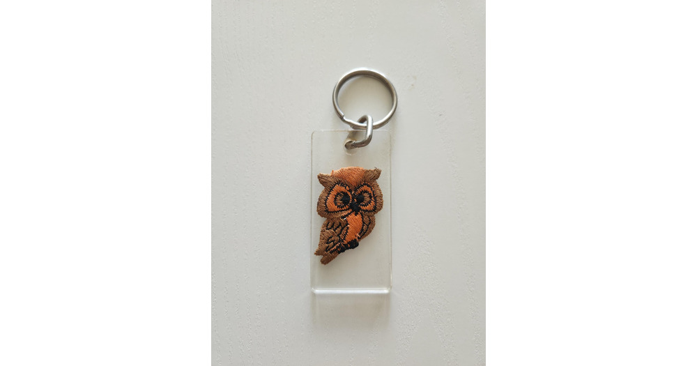 Vintage Clear Acrylic Owl Patch Key Ring Chain -- Vintage Key Ring -- Purse/Bag Charm -- Novelty Key