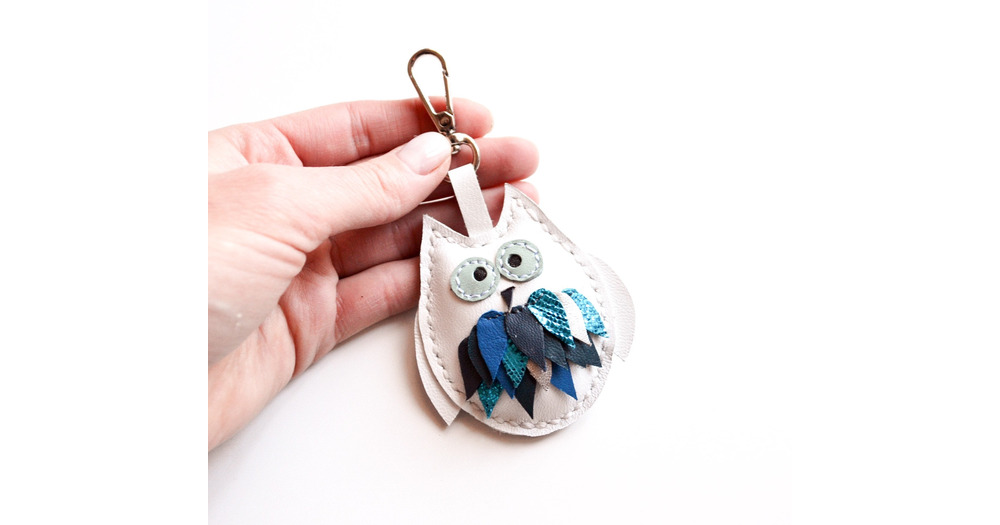 Personalized White Owl Key Fob, Leather Keychain, Cute mini Owl Bird, Animal Handmade Bag Charm, Wom