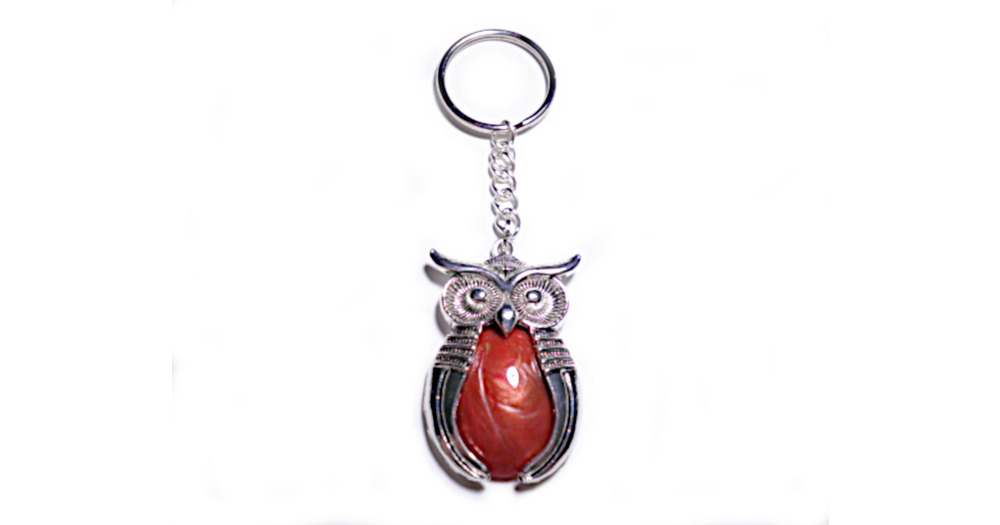 Owl Keychain,Silver Owl Keychain,Marbled RedWhiteGold,Split-ring Keycahin,Stainless steel