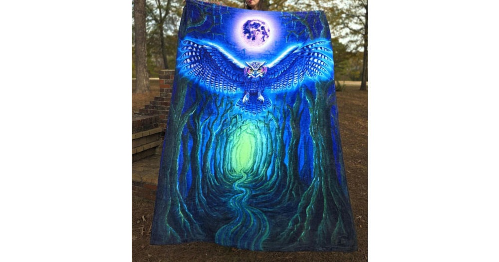 Owl Moon Blanket- Soft throw blanket, mystic forest psychedelic home decor, witchy bedroom, fuzzy be