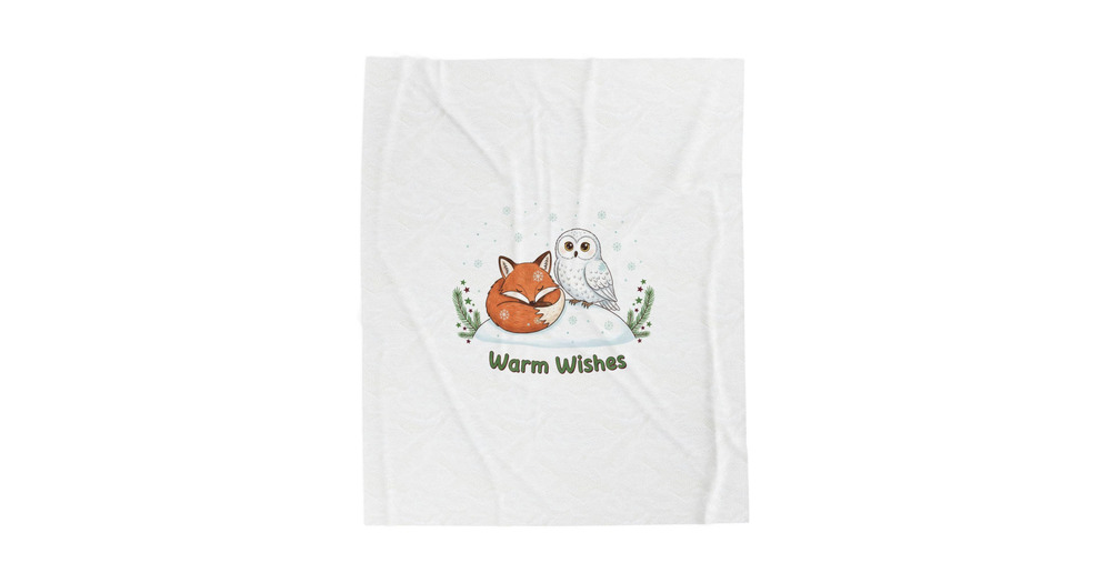 Warm Wishes Fox and Owl Plush Blanket | cute winter animal, cozy woodland