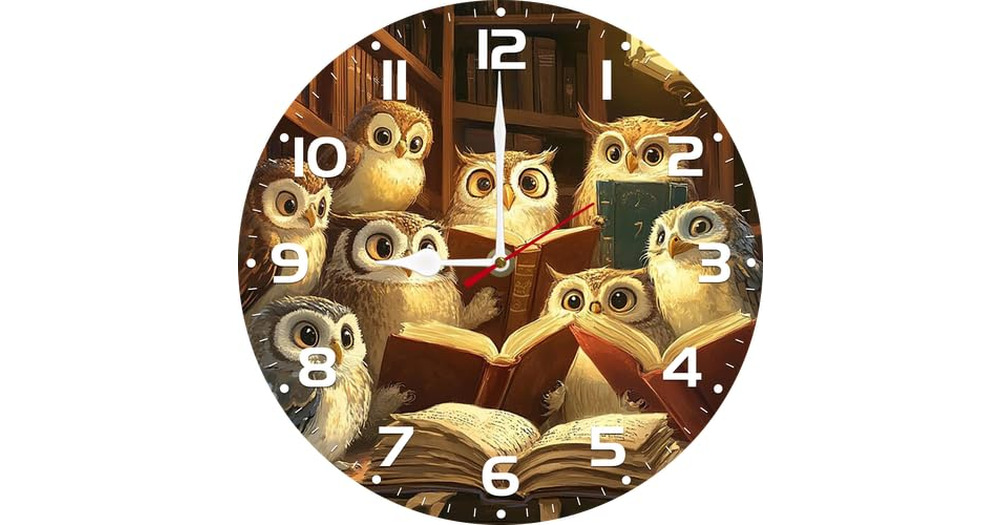 LERJIMUX 10 inch Vintage Wood Owl Reading Books Wall Clocks Silent Creative Living Room Decoration C