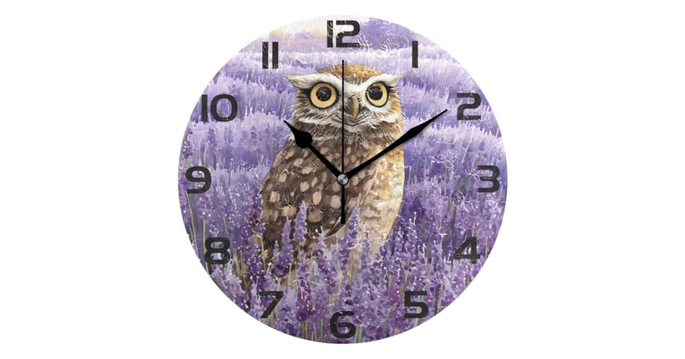 ALAZA Owl Lavender Wall Clock Non Ticking Decorative Desk Clock for Bedroom Kitchen Living Room Scho