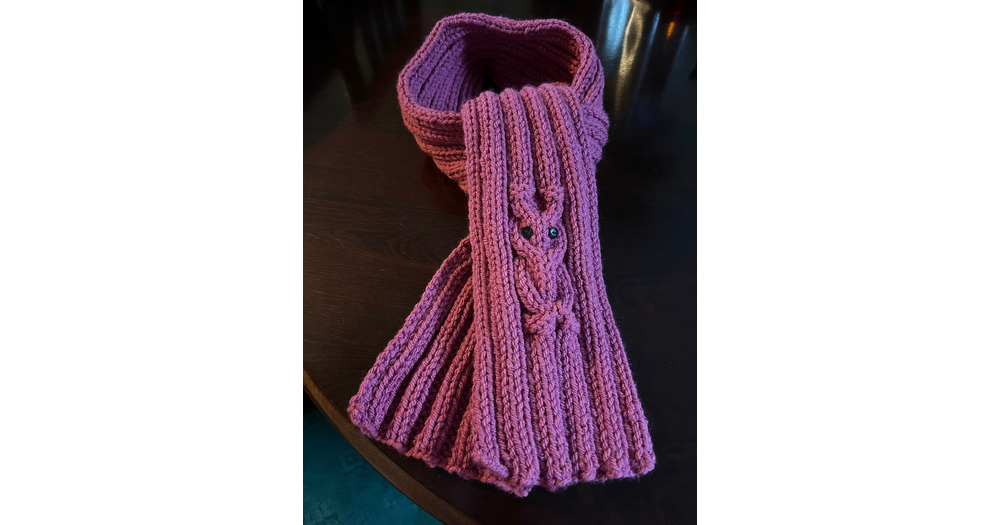 Hand-Knitted Owl Scarf: Dusky Pink Acrylic, Warm Winter Gift for 3 year old