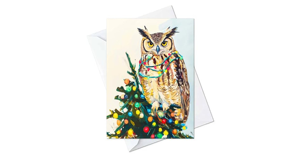 Great Horned Owl Tangled in Christmas Lights Greeting Cards - Cards with Envelopes - (Set of 10) Lar