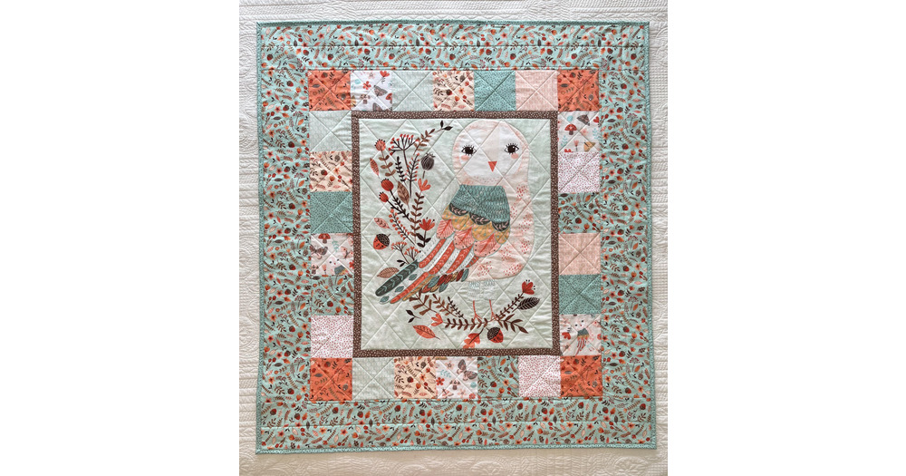 Forest Owl Baby Quilt: Aqua Peach Nursery Decor (36.5x40)