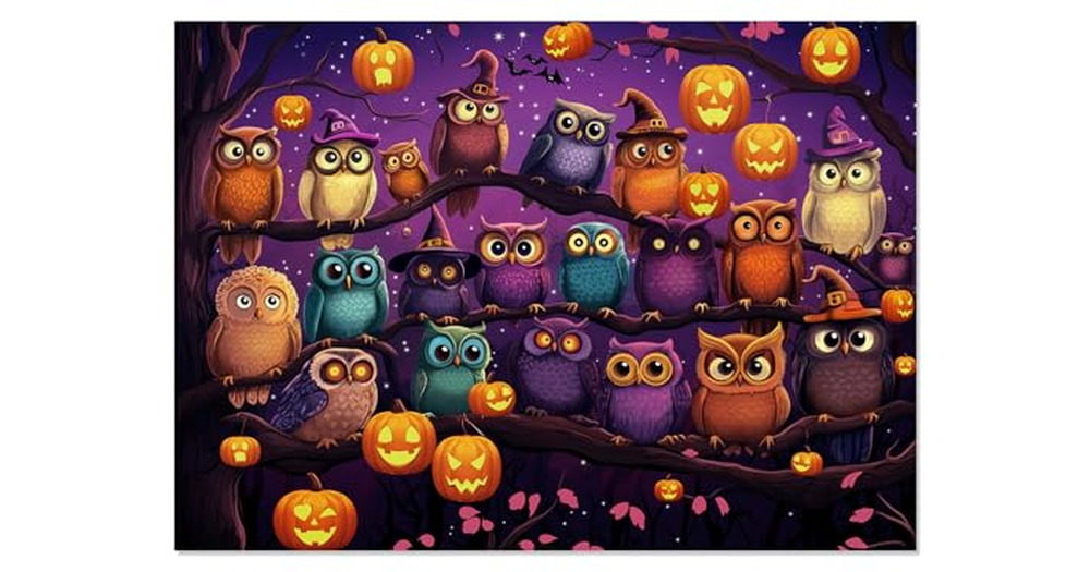 Halloween Puzzles 1000 Pieces for Adults,Halloween Owl Theme Jigsaw Puzzles Decoration,Creative Play