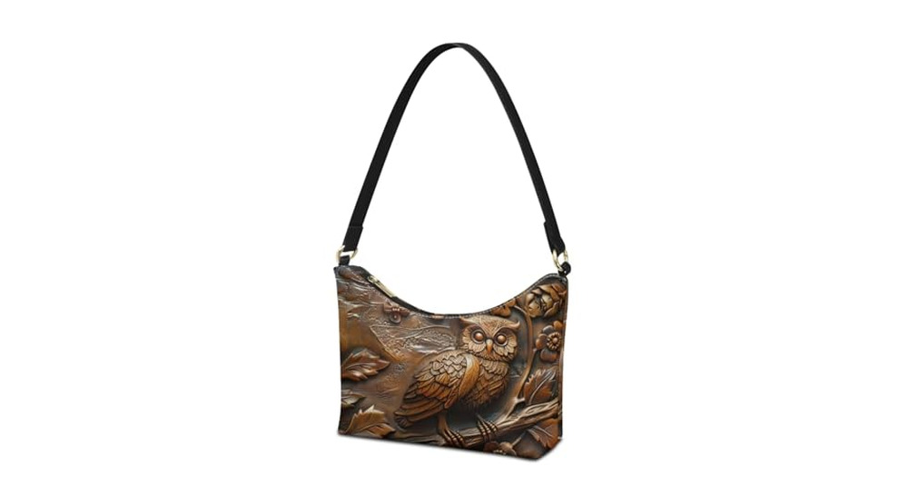 Lotusorchid Owl Floral Print Hobo Handbag Shoulder Bag, Women's PU Leather Shoulder Bag Portabl