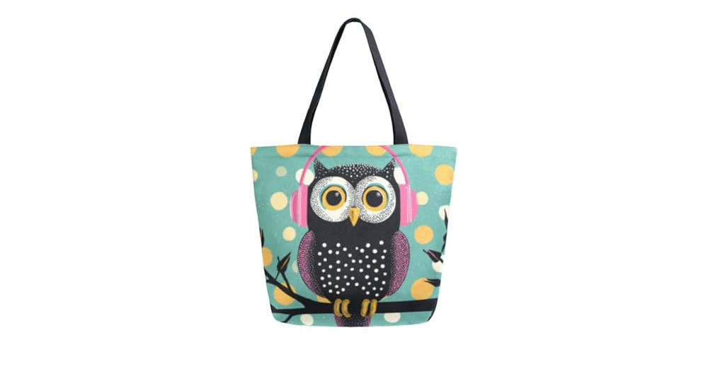 Owl with Pink Headphones Green Women's Tote Bag Canvas Shoulder Bag for Women Handbag for Work