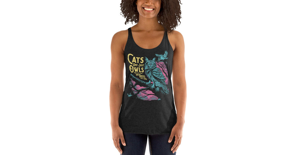 Cats are just owls who got stuck in tress too long - Women's Racerback Tank