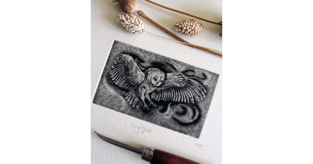 Hand Printed Barn Owl Mezzotint: 'Nightfall'