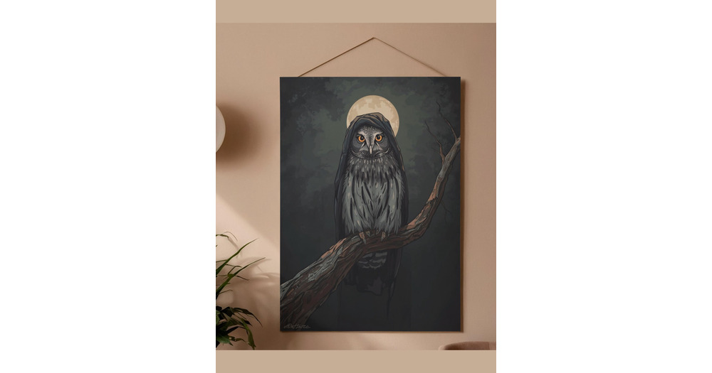 Owl Wall Art – Watchful Wisdom Animal Digital Print Modern Minimal