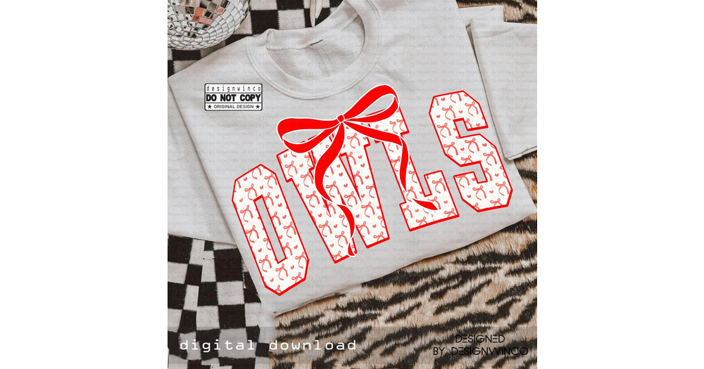 Owls Mascot PNG, School Spirit Wear Sublimation PNG, Coquette Bow PNG, Girly Cheer Team Pride Game D