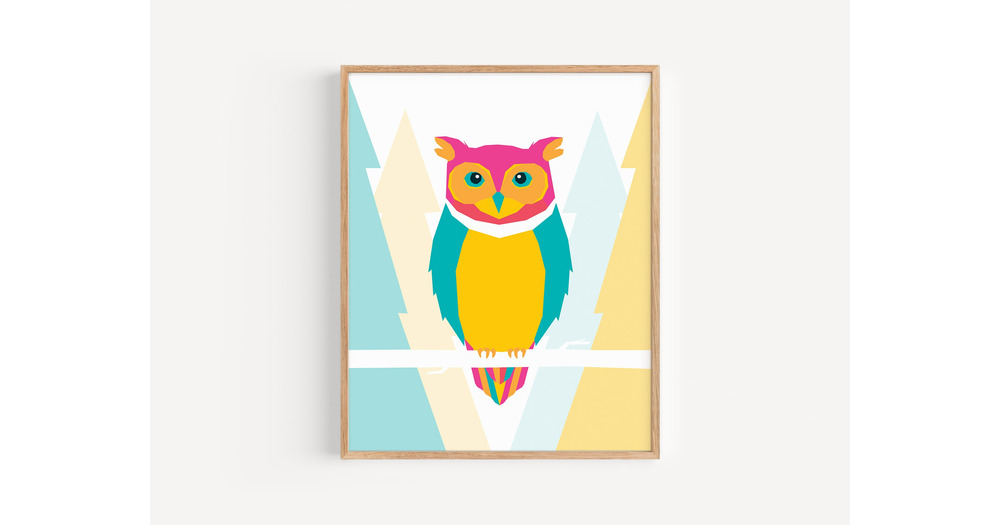 Neon Owl Print // 8x10" x 11x14" Illustrated Animal Print on Fine-art Paper // Colourful,