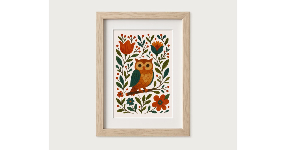 Nordic Folk Owl Printable | Scandinavian Floral Wall Art