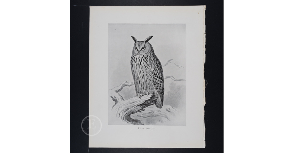 Eagle owl - Original vintage print "British Birds with their Nests and Eggs" 1896
