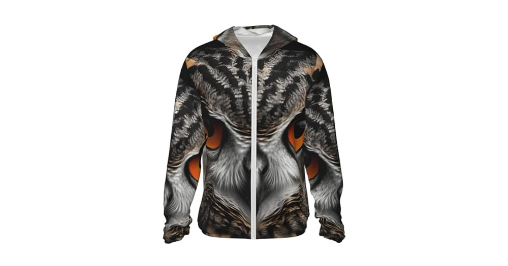 Dwrepo UPF 50+ Owl Eyes Print Sun Protection Hoodie Jacket Full Zip Long Sleeve Sun Shirt 3X-Large B