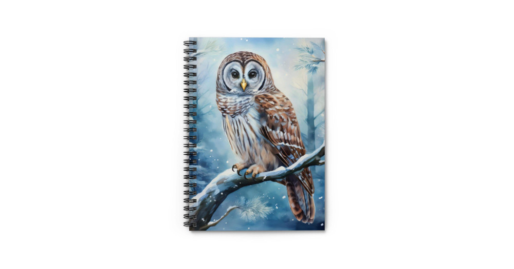 Owl in Snowy Forest Spiral Notebook | Ruled Lined Journal