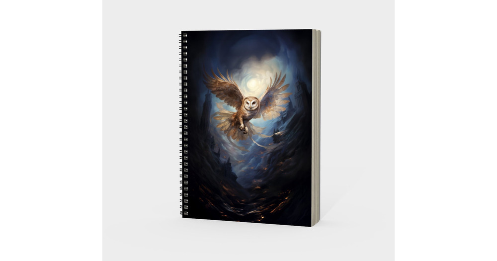 Large Moonlight Flight Owl Spiral Notebook - Large Owl Notebook - aesthetic notebook, owl notebook,