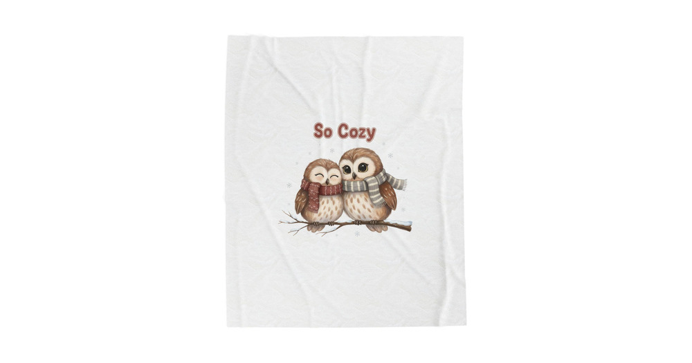 Cozy Owls Illustration Velveteen Plush Blanket | cute winter animal, woodland creature