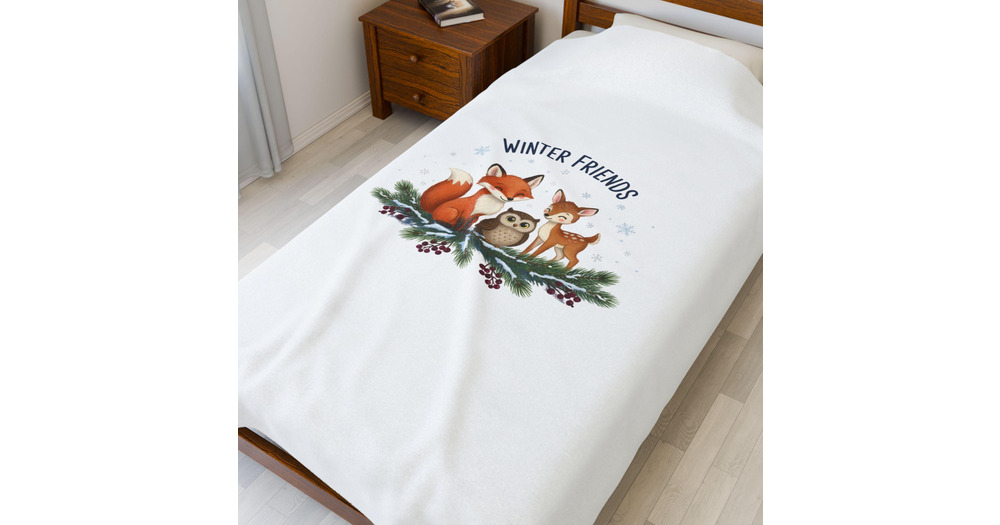 Winter Friends woodland fox owl blanket | cute winter animal, cozy holiday decor
