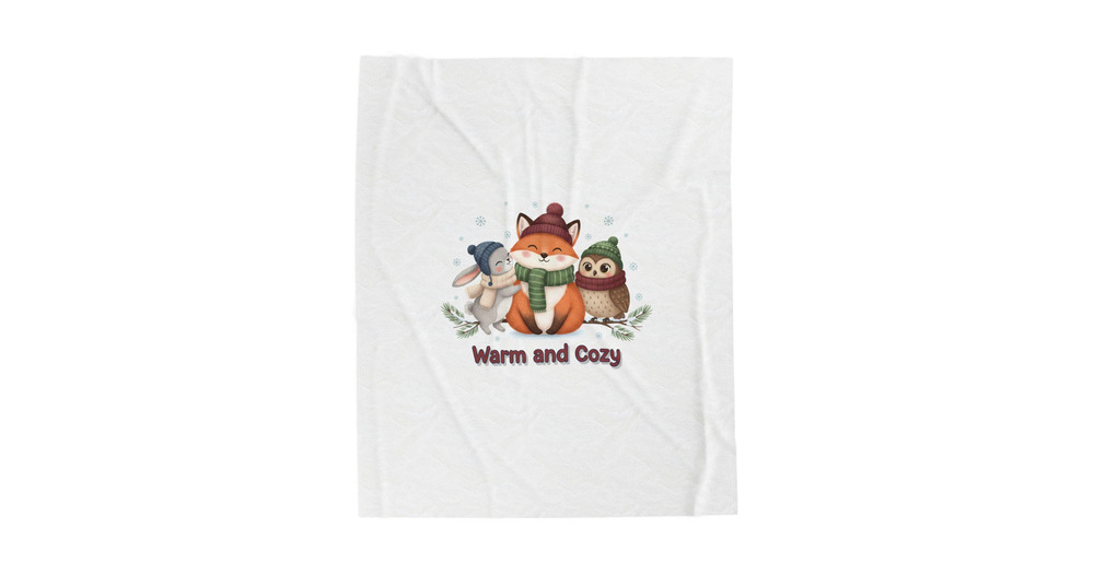Warm and Cozy Cute Winter Animal Velveteen Blanket | woodland fox rabbit owl, pine green burgundy pa
