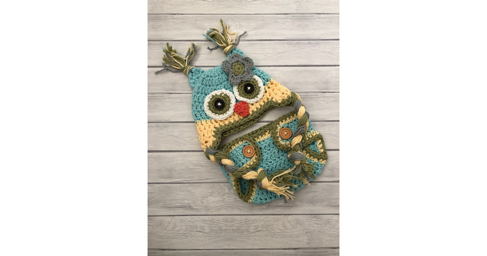 Baby owl hat and diaper cover, gender neutral hat, newborn photo prop, crochet owl hat, photo props