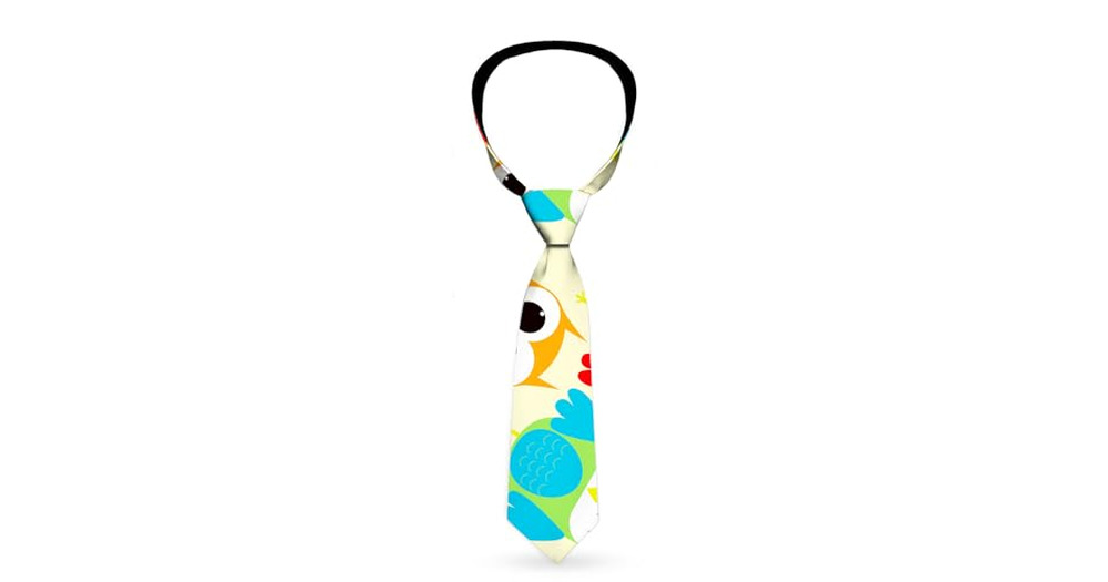 Buckle-Down Tie, Necktie, Owl Eyes Yellow Reds Blues, Standard Length