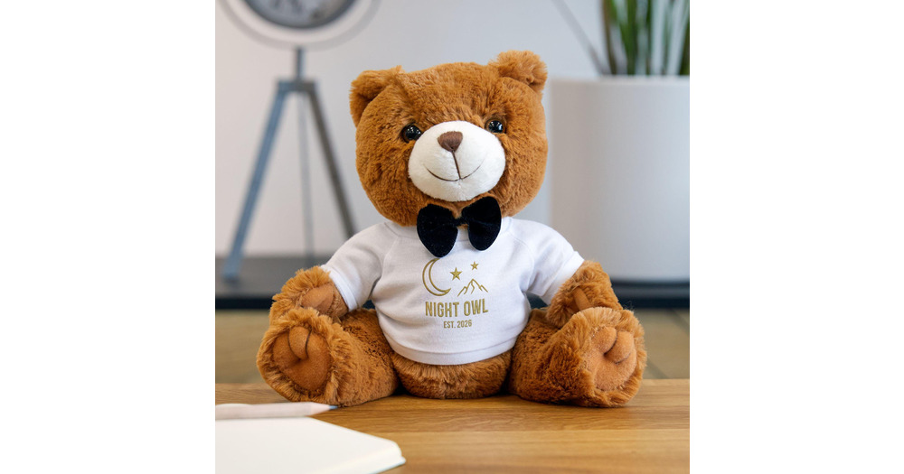 Night Owl Teddy Bear Plush with T-Shirt | Cute Brown Stuffed Animal