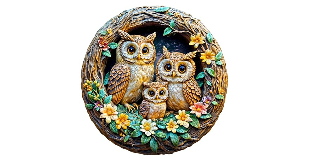 Wooden Puzzles for Adults - Owl Family Wooden Jigsaw Puzzle - Unique Shape 3D Vision Wood Puzzles Ad