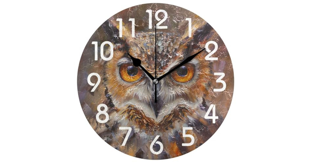 ZzWwR Beautiful Owl Face Oil Painting Round Wall Clock, 10 Inch Analog Quiet Non Ticking Desk Clock