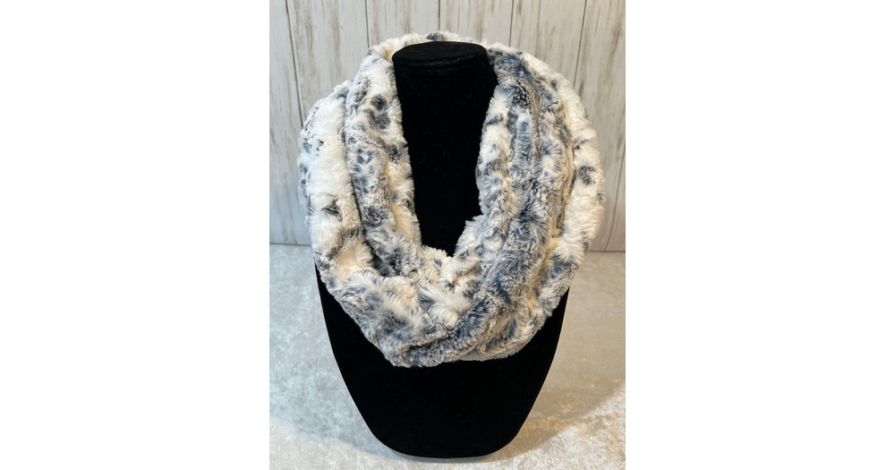 Minky Infinity Cowl Scarf of Snowy Owl Navy Luxe Cuddle, Luxury Faux Fur, Christmas Gift, Womans Gif