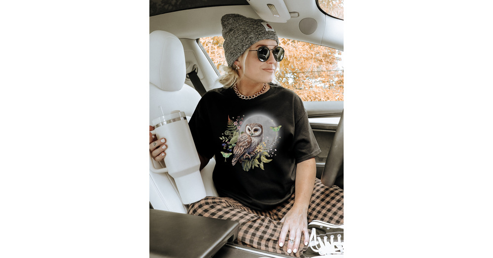 MYSTICAL OWL and Luna Moth T-shirt, Forest Bird shirt, Wildlife Tee, Nature inspired Shirt, Cottagec