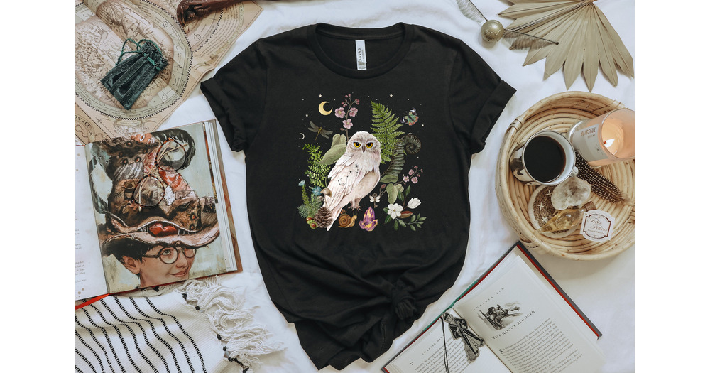 SNOWY OWL Mystical T-shirt, White Owl Shirt, Witchy Shirt, Forest Bird Tee, Nature Lover Shirt, Fair