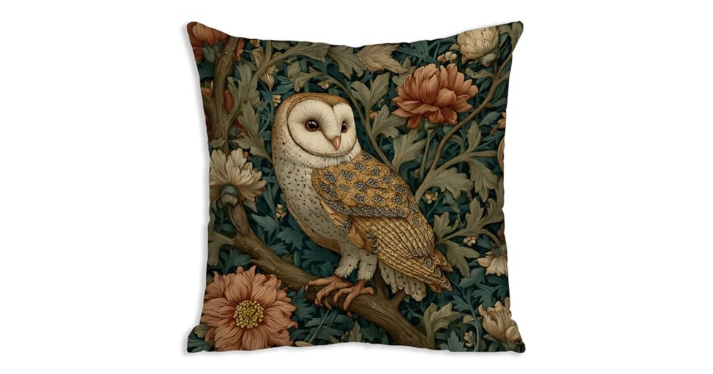 DWSHX William Morris Inspired Design Floral Pillow Covers, Vintage Floral Owl Print Throw Pillow Cov