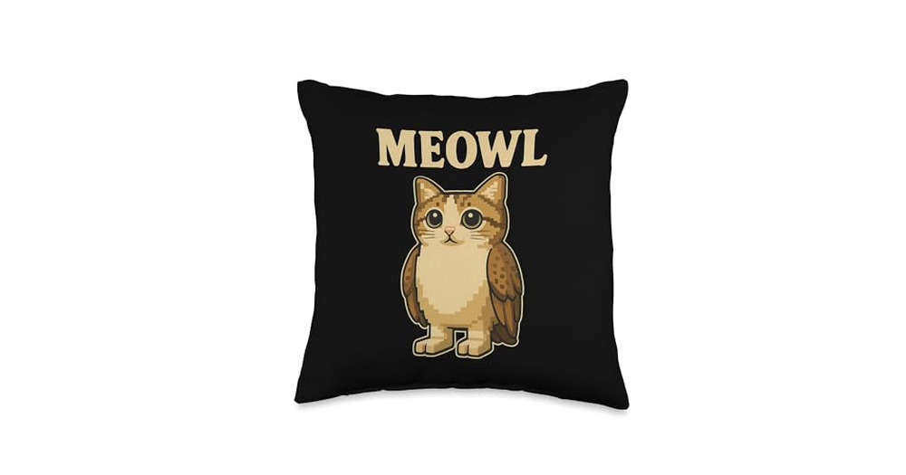 Meowl - Funny Meow Cat Owl Brainrot Meme Teen Kids Gaming Throw Pillow