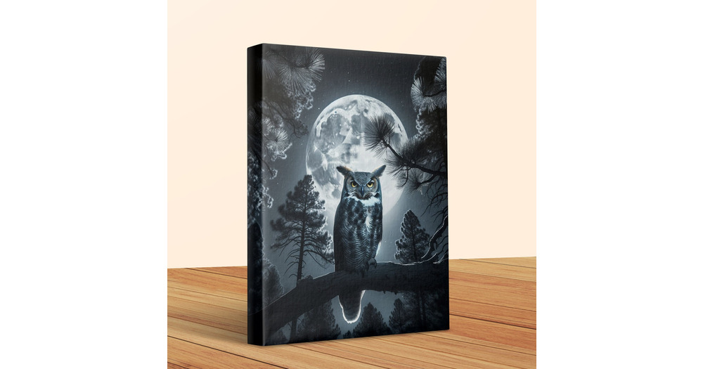 Moonlit Owl Canvas Art, Forest Night Sky Print, Woodland Home Decor