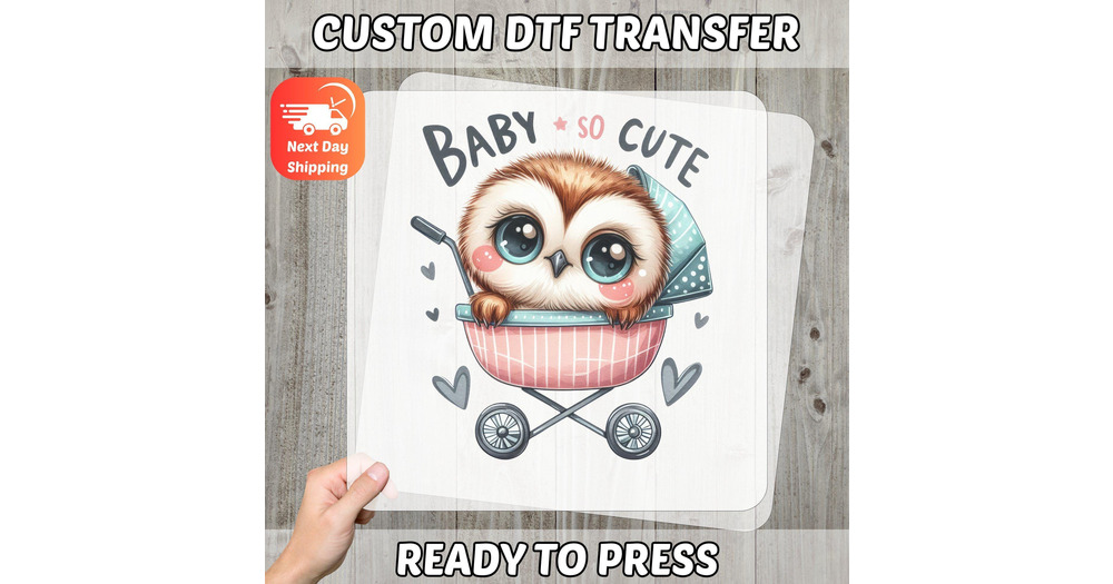 Cute Baby Owl DTF Transfer, Adorable Stroller Design for Newborn Celebration, Heartwarming Iron-On D